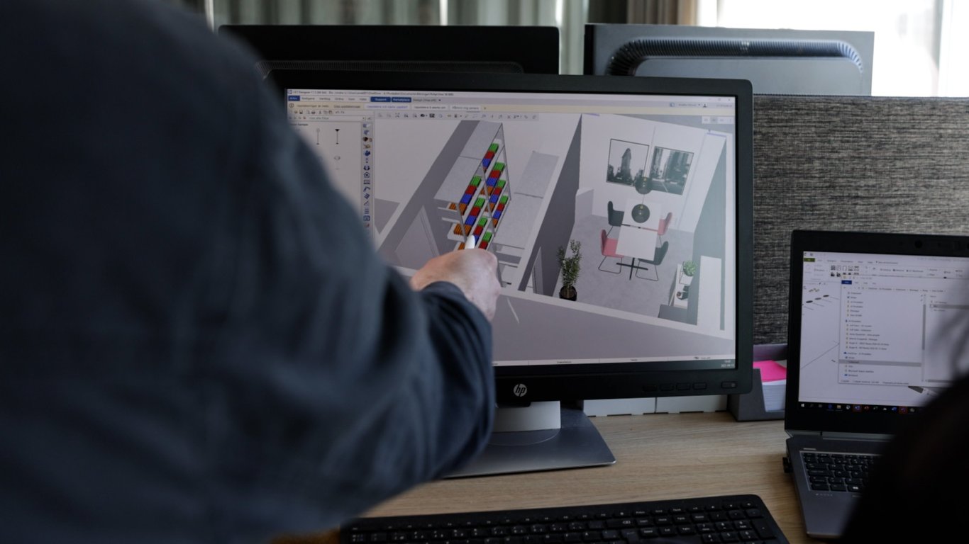 När önskemålen samlats ihop gjorde vi som vanligt och följde vår projektplan. Philip rapporterade till projektteamet på kontoret i Halmstad där flera medarbetare kopplades in. Teamet skissade och tog fram förslag på passande möbler och utrustning, sedan gjordes ett 3D-ritning som tydligt åskådliggjorde lösningen. Slutligen presenterade vi vårt förslag för uppdragsgivaren – som omedelbart nickade bifall.
