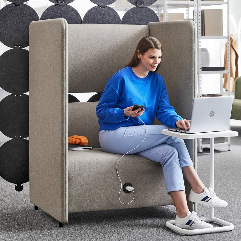 W przypadku prostszych zadań lub rozmów, akustyczna sofa zapewniająca prywatność może być alternatywnym miejscem pracy. Mniejsza i osobista przestrzeń w większym pomieszczeniu, w której nadal można siedzieć blisko współpracowników.